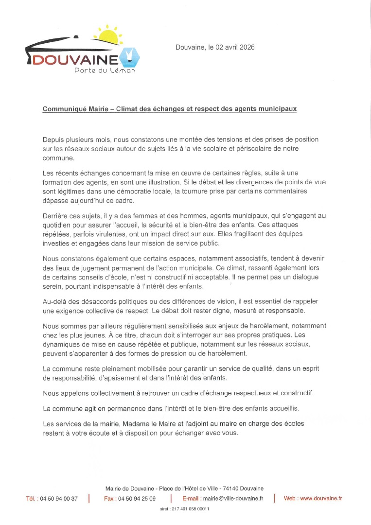 Communiqué Mairie – Climat des échanges et respect des agents municipaux