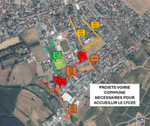 • Travaux de libération des emprises avec la création d’une nouvelle voie du Maisse, un renforcement du Chemin sous le Bois pour le rendre circulable pendant le chantier du lycée, et enfouissement des réseaux avenue des Acacias.